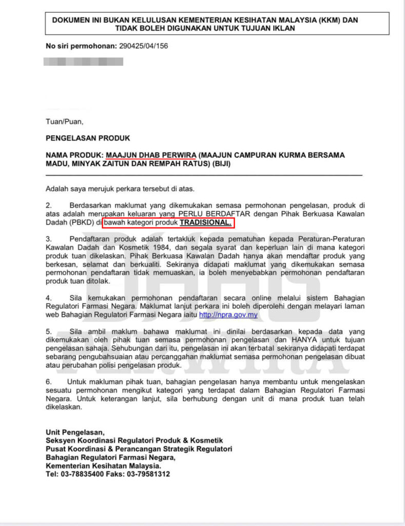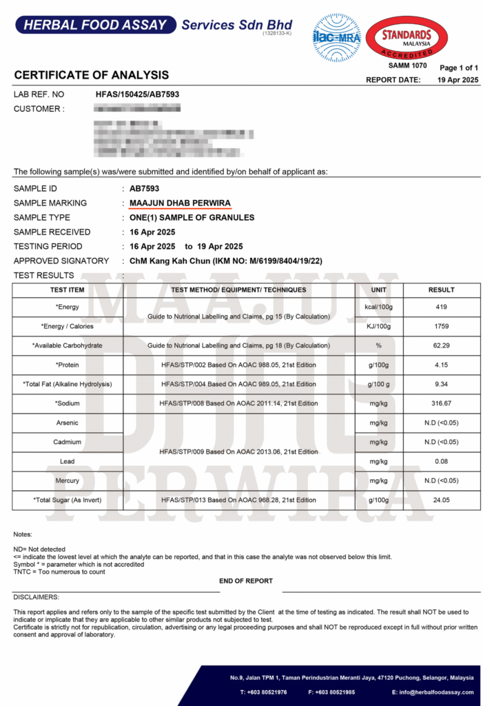 Maajun Dhab Perwira Terbukti Selamat dan Tiada Bahan Kimia LULUS KKM Dibawah Pengkelasan Kategori TRADISIONAL