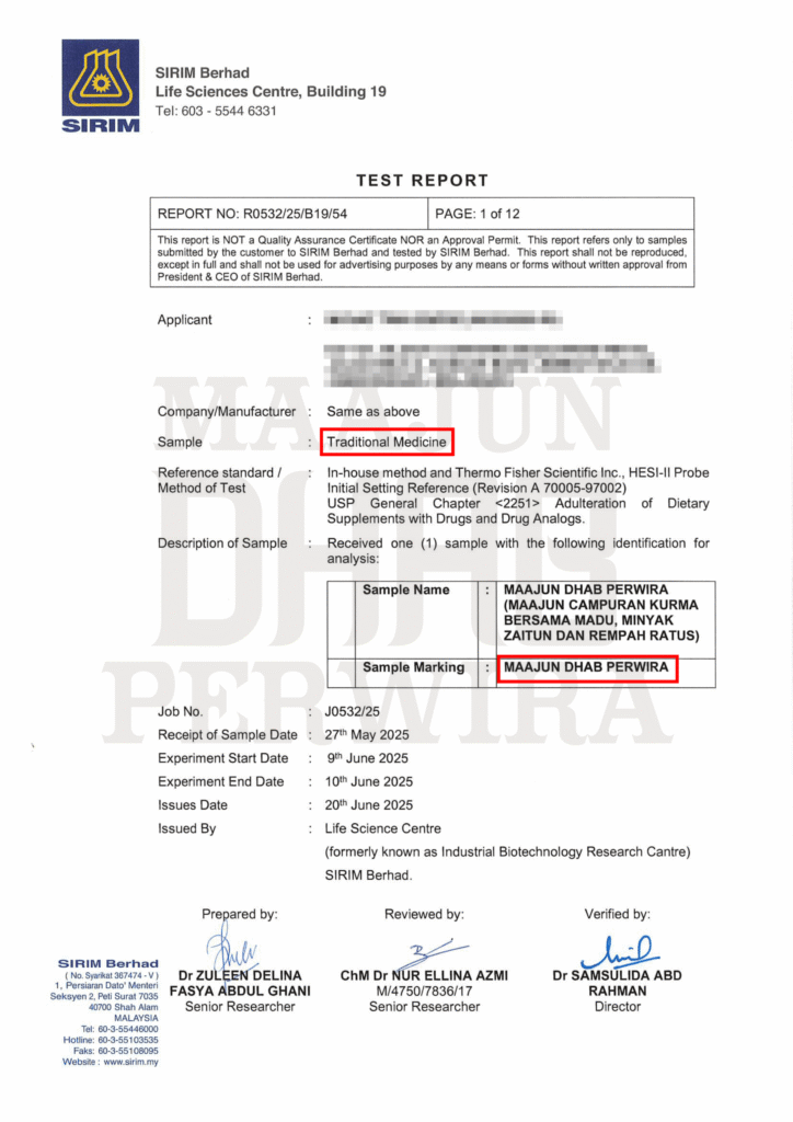 Maajun Dhab Perwira Lulus Ujian SIRIM, Bebas Unsur Racun & Tiada Kandungan Dadah